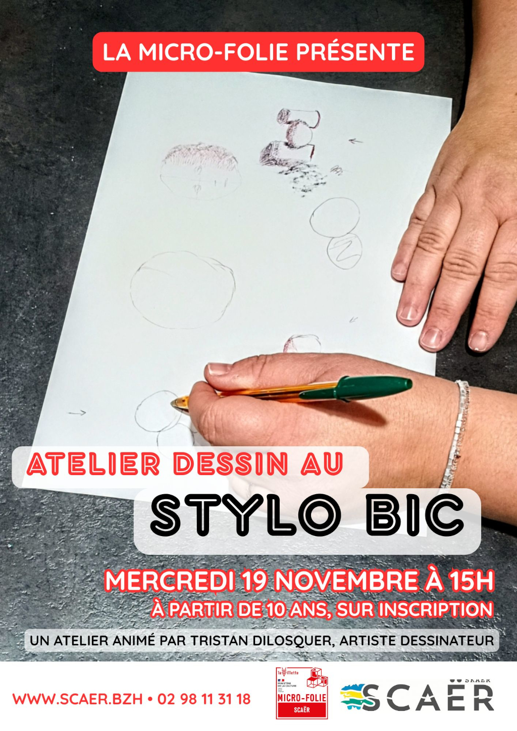 Scaër : atelier dessin au stylo Bic à la Micro-Folie