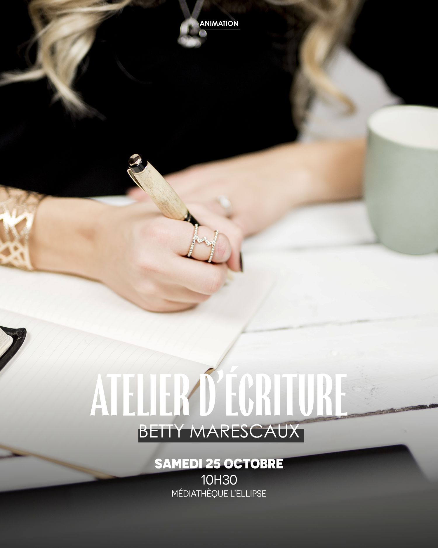 Guidé par l’autrice et animatrice Betty Marescaux, chaque atelier invite à expérimenter des jeux d’écriture ludiques et créatifs, seul ou à plusieurs, pour débloquer l’inspiration et explorer de nouvelles pistes narratives.
