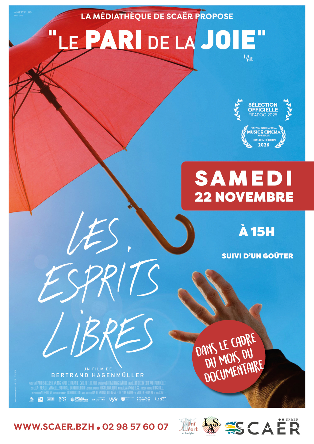 Dans le cadre du mois du doc, coordonné dans le Finistère par l’association Daoulagad Breizh, nous vous proposons la projection d’un film documentaire : Les Esprits Libres, de Bertrand Hagenmüller (1h34, 2023, France). La diffusion se fera en présence de la co-réalisatrice Virginie Naudillon et sera suivie d’un goûter offert par l’association Lire à Scaër.